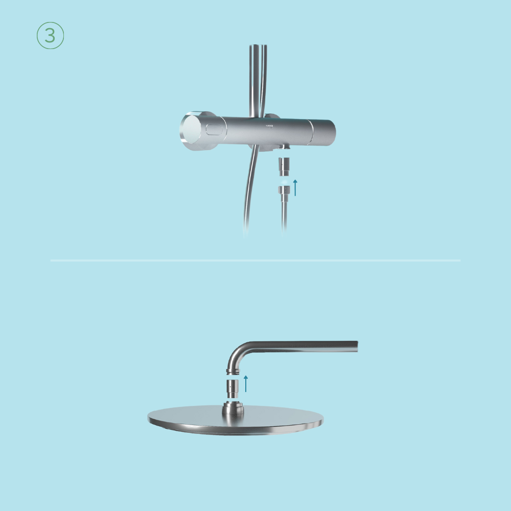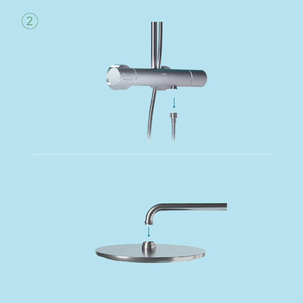Schraube die GREENJET Düse auf das vorhandene Anschlussrohr – ohne Werkzeug. Schon kannst du Wasser und Geld sparen.
